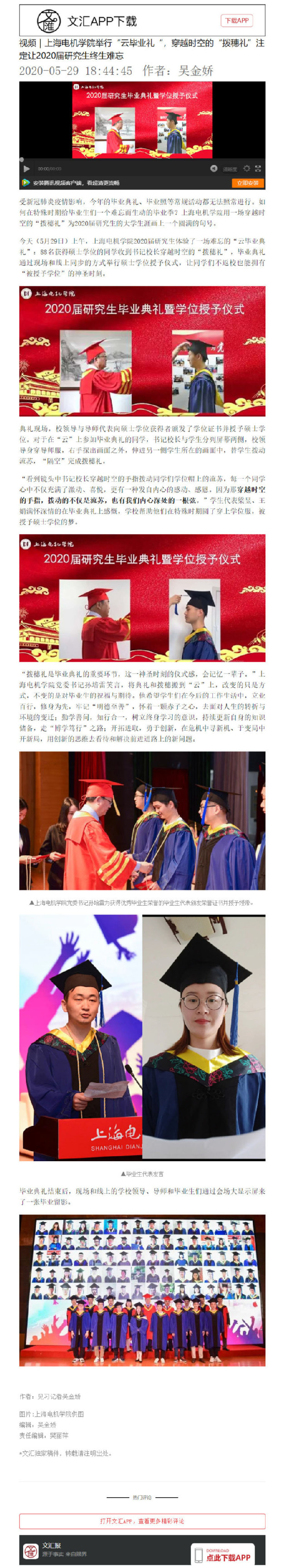 【文汇】视频|上海电机学院举行“云毕业礼“,穿越时空的“拨穗礼”注定让2020届研究生终生难忘