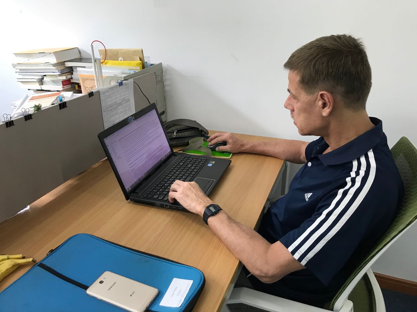 为进一步提高学生的德语听说能力,学院本学期聘请了德语外教(Uwe Fricke),德语教学团队也迅速完成了外教授课的相关准备,目前外教已经顺利参与了一年级的“德语听说”和二年级的“综合德语”课程的教学。