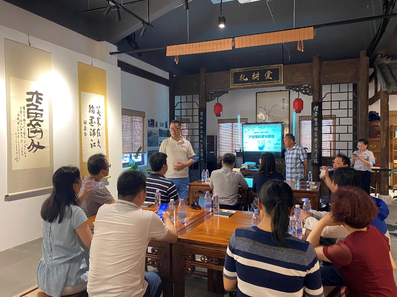 参观结束后,在革新建业馆的二楼,由浦江镇退休干部,国家级非遗“沪谚”市级传承人张石明老先生,为我们进行了一场《沪谚话家风》的别开生面的党课。