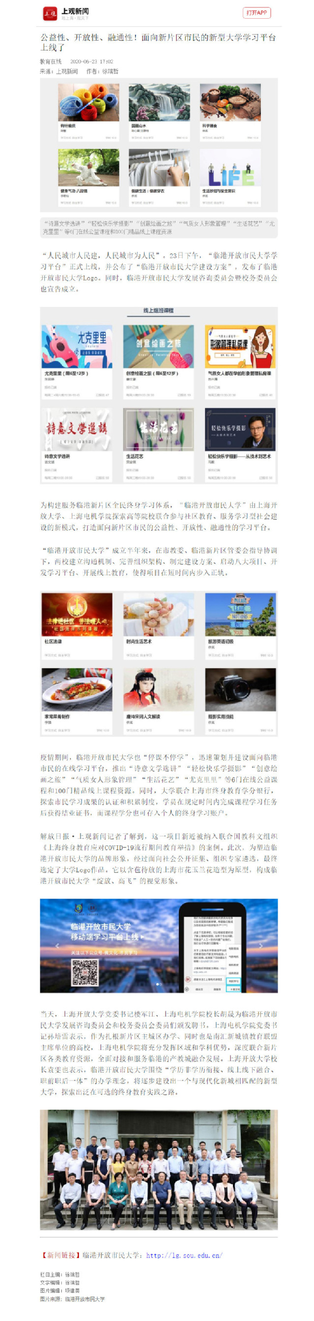 【上观】公益性、开放性、融通性!面向新片区市民的新型大学学习平台上线了