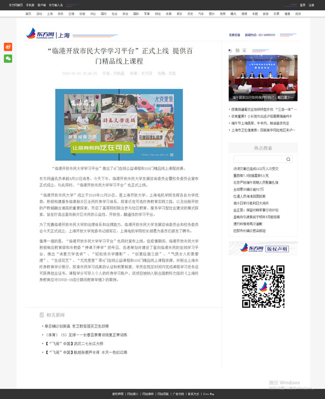 【东方网】“临港开放市民大学学习平台”正式上线 提供百门精品线上课程
