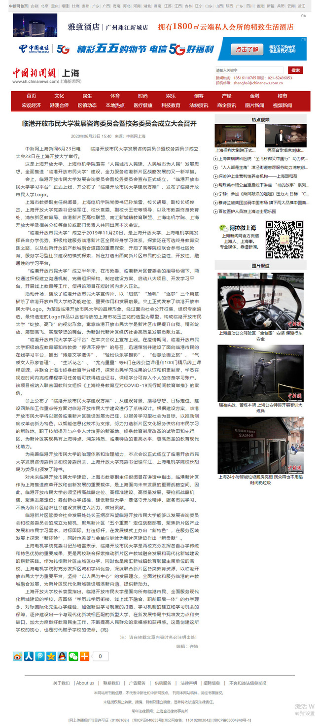 【中国新闻网】临港开放市民大学发展咨询委员会暨校务委员会成立大会召开
