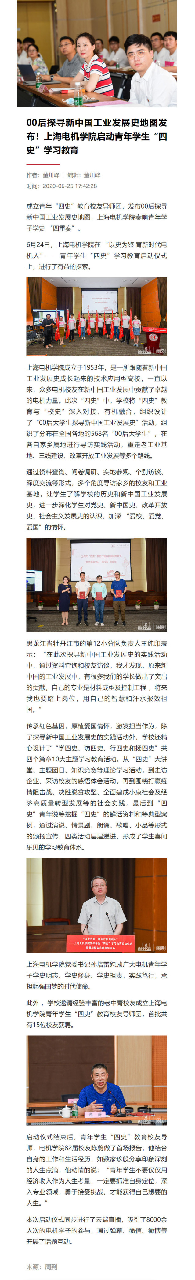 【周到】00后探寻新中国工业发展史地图发布!上海电机学院启动青年学生“四史”学习教育