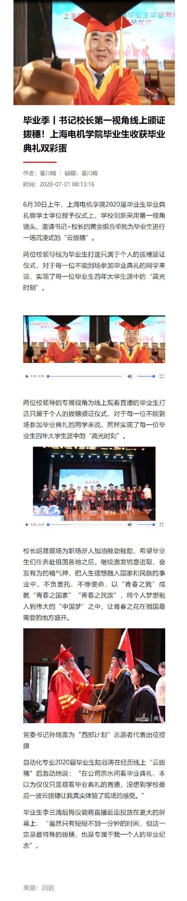【周到】毕业季丨书记校长第一视角线上颁证拨穗!上海电机学院毕业生收获毕业典礼双彩蛋