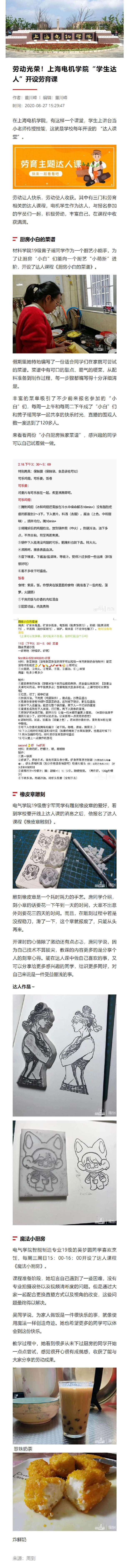 【周到】劳动光荣!上海电机学院“学生达人”开设劳育课