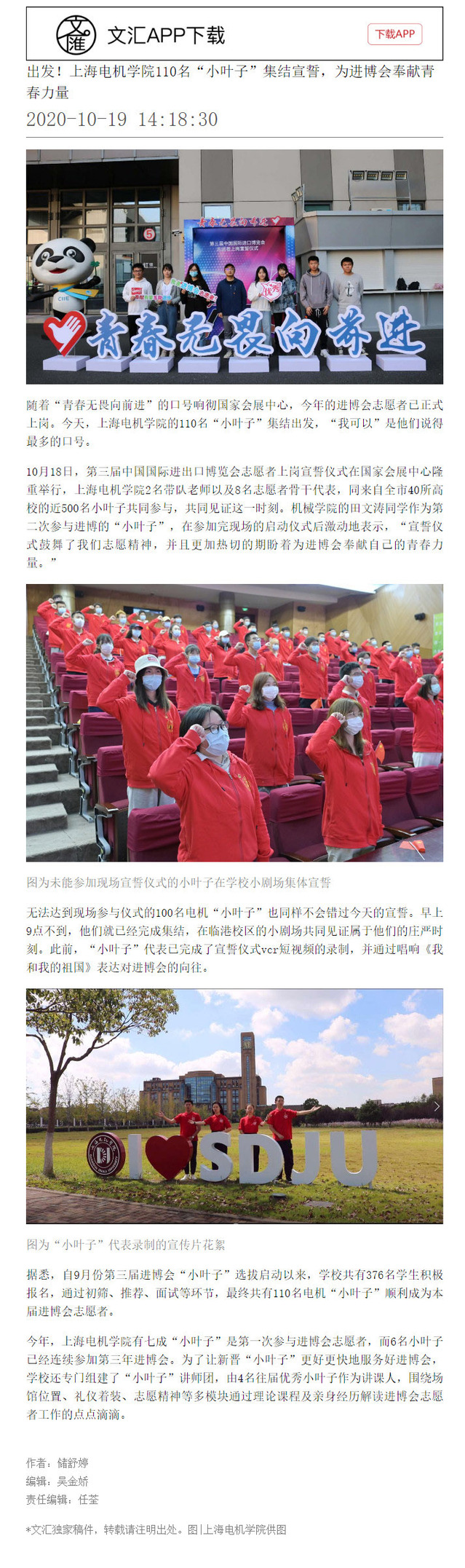 【文汇】出发!上海电机学院110名“小叶子”集结宣誓,为进博会奉献青春力量