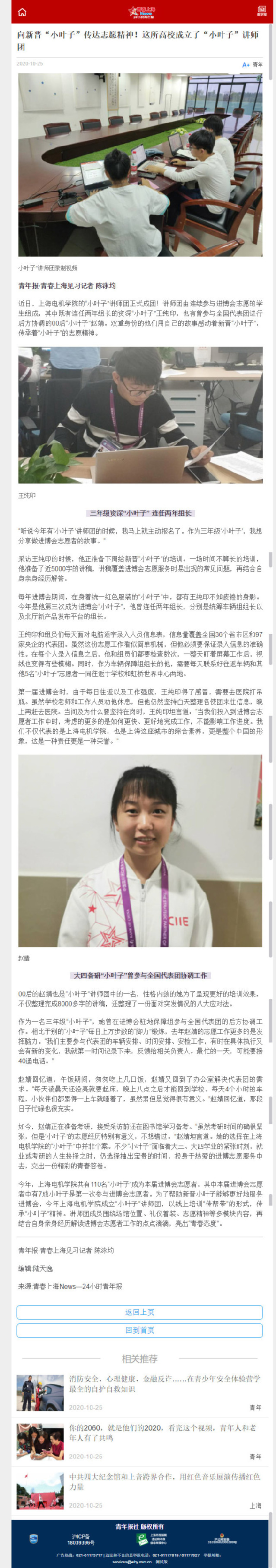 【青年报】向新晋“小叶子”传达志愿精神!这所高校成立了“小叶子”讲师团