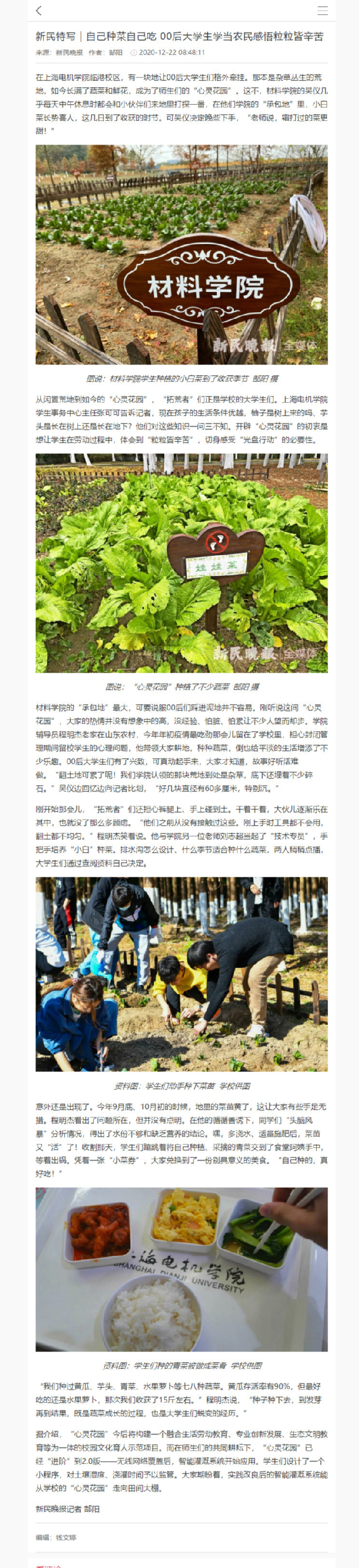 【新民晚报】自己种菜自己吃 00后大学生学当农民感悟粒粒皆辛苦