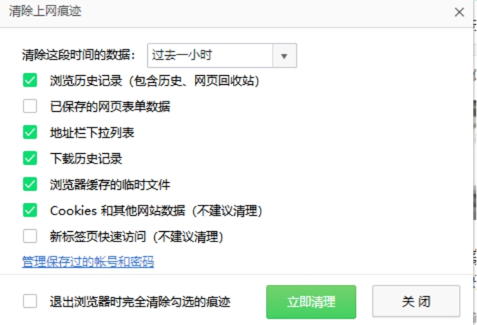 以360浏览器为例,浏览器设置-->隐私安全设置-->清除上网痕迹(或按Ctrl+Shift+Delete),选择“Cookie和其他网站数据”、“缓存的临时文件”清理浏览器缓存。(各浏览器清理缓存方法稍有不同,可根据版本上网查询)