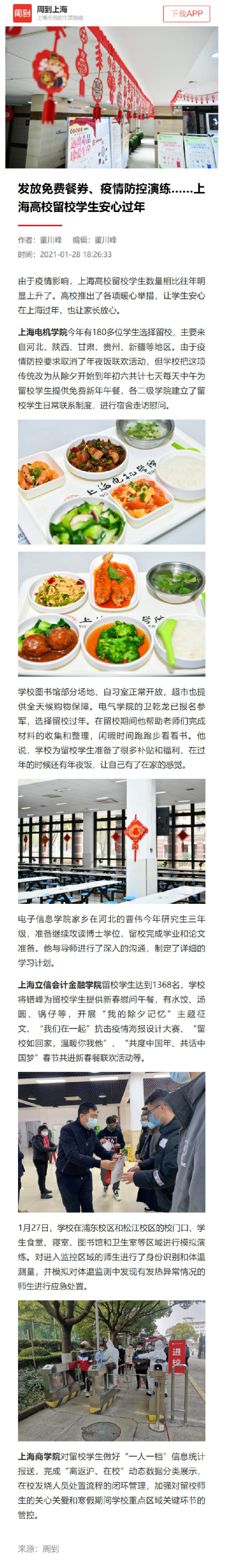 【周到】发放免费餐券、疫情防控演练……上海高校留校学生安心过年