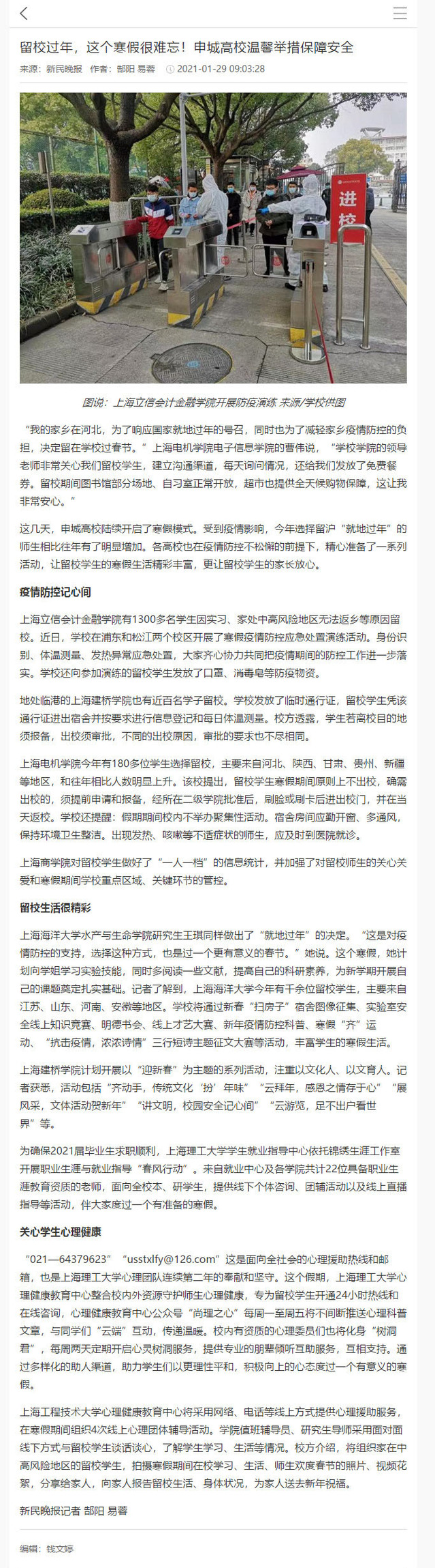 【新民晚报】留校过年,这个寒假很难忘!申城高校温馨举措保障安全