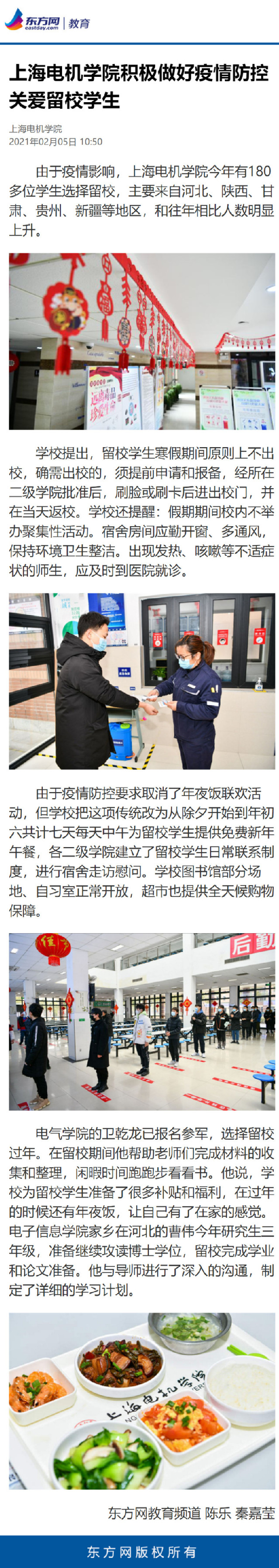【东方网】上海电机学院积极做好疫情防控 关爱留校学生