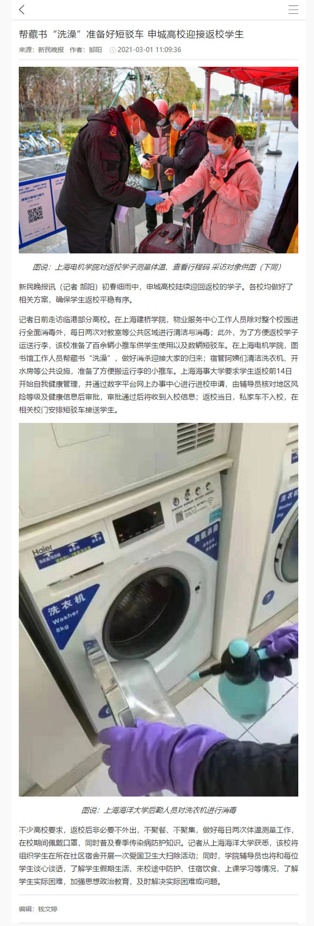 【新民晚报】帮藏书“洗澡”准备好短驳车 申城高校迎接返校学生