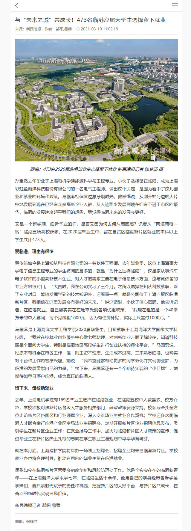 【新民晚报】与“未来之城”共成长!473名临港应届大学生选择留下就业