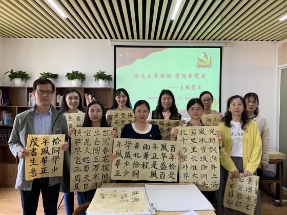 为推进党史学习教育高标准高质量开展,高职学院党总支两个学生党支部共同开展了“写主席诗词 学百年党史”主题党日活动。两个支部的全体党员参加了本次活动,高职学院党总支书记陆永贤应邀出席。
