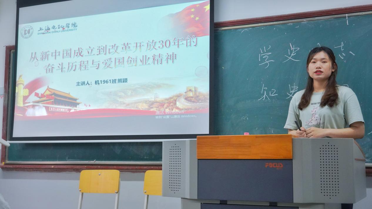 上海电机学院大学生“学史明志”党史宣讲团今年4月组建,是上海市委讲师团、上海市教卫工作党委宣传处共同组建的上海市大学生理论宣讲联盟的一员。此次是宣讲团成立后第一次大规模集中宣讲,此前宣讲团成员电气学院研究生陆海玲同学已于6月3日为上海电机学院附属临港科技学校作了《红船精神,百年初心历久弥坚》的党史宣讲,后续设计与艺术学院、文理学院、中德学院和高职学院的宣讲团成员也将陆续开展党史宣讲。大学生宣讲团的党史宣讲受到了学校师生的普遍欢迎,取得了很好的宣讲成效,为建党百年营造了浓厚的党史学习教育氛围。(胡欣诣)