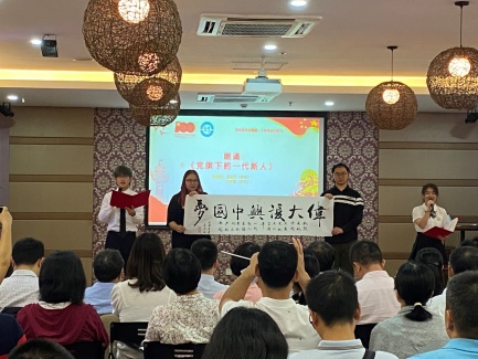 各支部及系部师生们红色歌曲大合唱《我的祖国》、《我和我的祖国》、《没有共产党就没有新中国》、《团结就是力量》让大家重温了在中国共产党的坚强领导下中国人民一路披荆斩棘,从胜利不断走向胜利的历史征程。