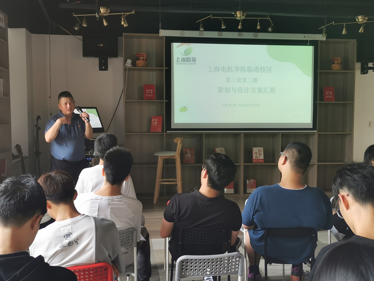 7月13日下午,后勤保障中心通过团委和校工会邀请了部分师生参加了临港校区三食堂二楼改造方案汇报会。在壹书屋,与会师生通过餐饮公司的介绍,纷纷选择了自己喜欢的菜品和不同位置的餐桌椅的样式。会上,后勤保障中心副主任顾宏亮介绍了三食堂二楼改造的设想和思路:通过软硬件的整体改造和提升,要把三食堂二楼建改造成学生学习、休闲、餐饮、小型社团活动、娱乐社交、劳动实践基地于一体的现代大学食堂,同学在这里能实现学习、娱乐、交流、实践等多方面需求。三食堂经营企业——上海启菲实业有限公司法人汪第先生通过ppt,围绕“幸福’食’刻 ,美好生活大学食堂”主题,亲自介绍了三食堂项目经营理念、模式、布局方案、以及具体可供选择的餐品、各个不同区域餐桌椅样式等。会上,同学们还就食堂菜品口味、个人个性需求等提出一些建议和要求,均得到了会议组织方的积极响应。