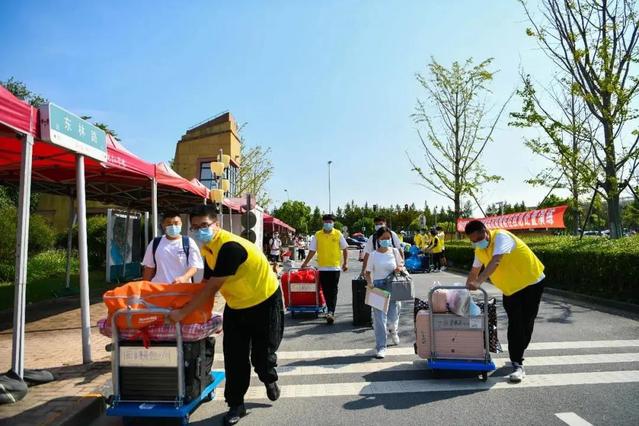 滴水湖地铁站直通校园生活区的大巴车,在严格执行防疫措施的前提下,为新同学解决了报到的“最后一公里”难题,也让无法入校的家长们放下了心。校团委还组织志愿者,帮助新生将行李物品搬运到宿舍楼下。