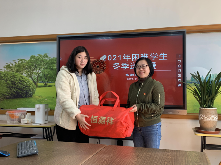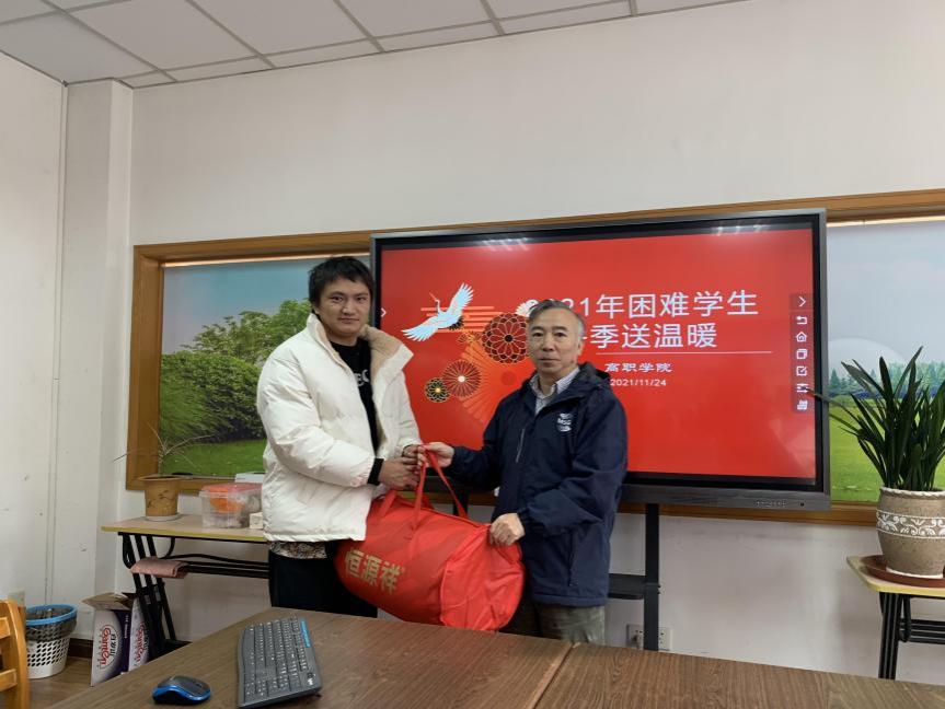 气温骤降、寒冬将至之际,高职学院积极践行“我为群众办实事”实践活动,于近日在技术中心B207会议室举办了2021年家庭困难学生冬季送温暖活动。高职学院党政领导和受助学生出席了本次活动。