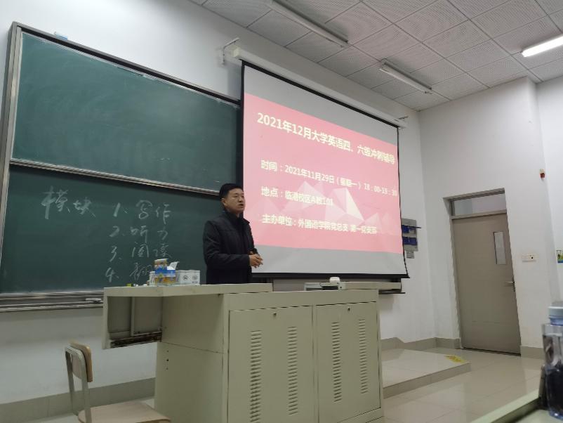 外国语学院党总支第一党支部主要由大学英语教学部教师组成,主要承担全校公共英语教学任务。结合党史学习“我为群众办实事”活动,11月29日晚,第一党支部选派两位党员教师在临港校区A教101举办 “大学英语四/六级考前辅导”讲座,来自各学院约120名本科生和研究生参加了此次活动。