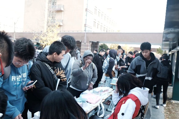 为了切实做好防艾宣传活动,学校红十字会做了精心准备。活动现场不仅有红会志愿者分发有关防艾的宣传单页,也有科普宣传机器人穿梭在人群中分发计生用品。在介绍艾滋病检测试纸使用的摊位前,学校红十字会志愿者准备了唾液式与血液式两种试纸样品,参与活动的同学可以选择其中一种来描述其使用方法,学校红十字会志愿者视情况给予指正,让参与活动的同学们了解到检测试纸的正确使用方法;在防艾知识问答摊位前,红十字会志愿者将预防艾滋的相关知识以问答的形式讲授给同学们。