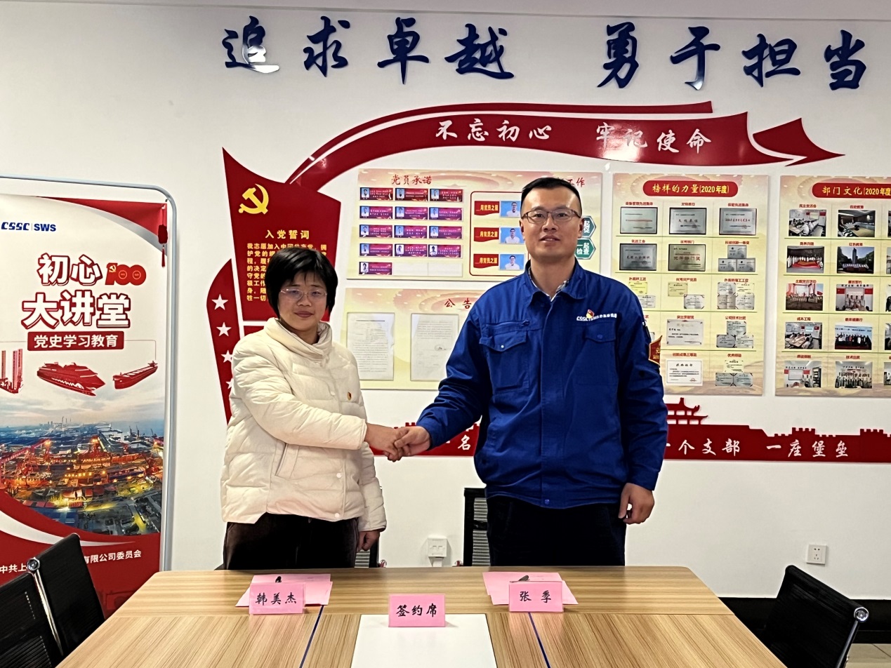 最后,上海外高桥造船海洋工程有限公司生保党支部与电气学院党委第三党支部达成了合作共建协议,以高质量党建引领保障校企联建的高质量发展,共建双方本着自愿结合、双向互动、资源共享、优势互补、合作共建的原则,加强党建联动、开展校企人才联合培养,产学研资源共享。
