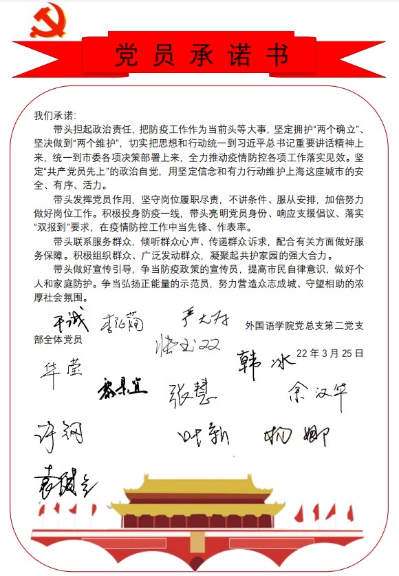 针对上级党组织的号召与倡议,上海电机学院外国语学院党总支组织全体党员立即行动,迅速落实。仅仅一天时间,学院党员就全部完成了线上线下的“社区报到”工作,用实际行动践行了“关键时刻站出来”的庄严承诺。