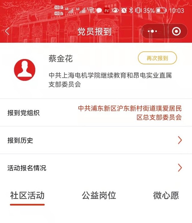 蔡金花同志是上海电机学院继续教育和昂电实业直属党支部的一名预备党员,受本轮新冠疫情影响,她所居住的沪东新村街道爱法新城小区自3月14日起实施了为期14天的封闭管理。出行受限、居家办公、孩子网课……生活的方方面面都因此改变了节奏,但小蔡同志克服种种困难,牢记自己是一名共产党员,积极投身防疫抗疫一线,配合所在社区进行志愿服务工作。