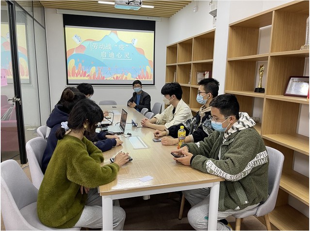 随后,相关师生赴19宿商学院党建活动室开展理论学习及交流讨论活动,理论课由马克思主义孙秀丽老师线上开讲。孙秀丽不仅强调了实地劳作的重要性,更向同学们深入地讲解了 “劳动的意义”,她指出在古往今来的社会发展中,劳动始终是一切力量的源泉。劳动创造了财富,更将人与人联系在一起,正如实践过程中的同学们,在配合中增长默契,在挥洒汗水中体验劳动的幸福。马克思主义学院多位教师也参与了线上交流,结合马克思主义劳动观,引导同学们注重劳动对精神的塑造。马克思主义学院院长范冬姣进行了总结,进一步阐释劳动教育的必要性,倡议同学们在生活中适当参与一定的体力劳动,尊重不同岗位的劳动者,在遵守疫情防控要求的前提下积极开展一些校园内的劳动,让劳动应该成为我们的本色。