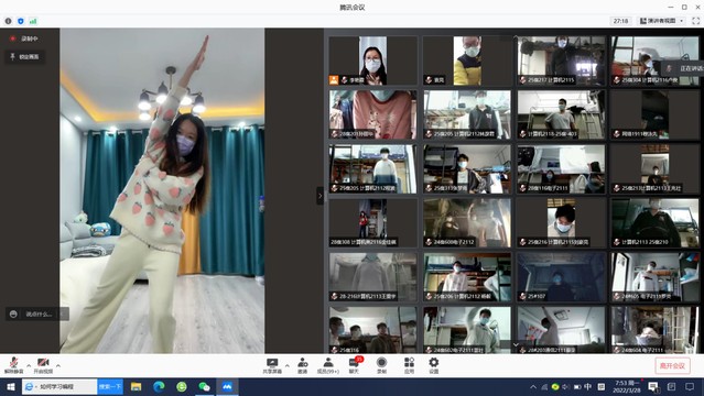 同学们跳着信念操,“信念值”不断增强,既能缓解长时间网课造成的紧张情绪,还能强身健体,同时也丰富了课余生活。(供稿 电子信息学院)