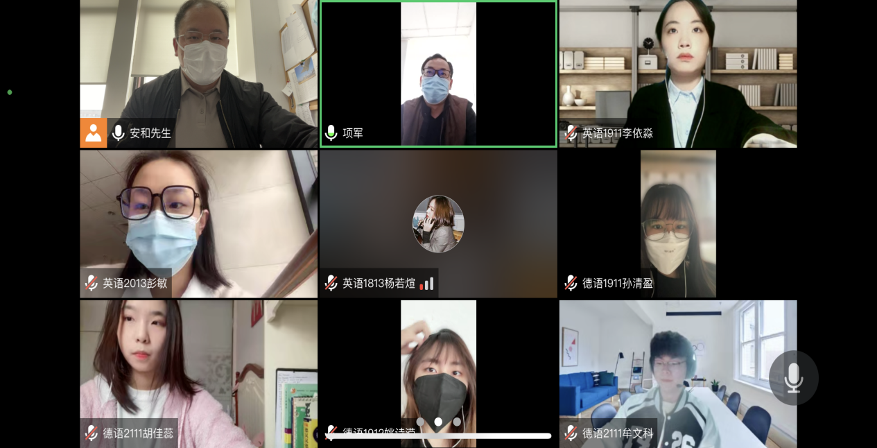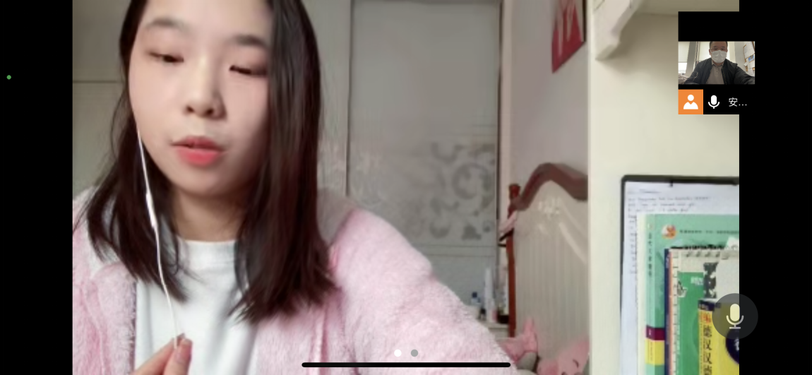 德语1912班姚诗滢同学和德语1911班林陕江、孙清盈同学分享了疫情期间自己在德国的学习生活情况,表示自己的线上教学、生活安排都在稳步推进,将时刻关注相关回国信息并严格对照入境管理规定和防控流程安排好学习生活。