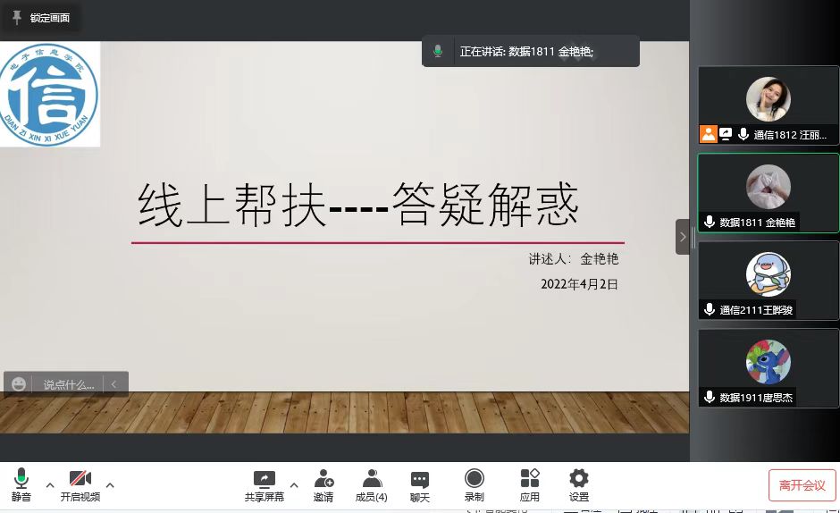 一支由电子信息学院第四党支部党员带领,发展对象、入党积极分子组成的近80余人的“小海鸥”学业帮扶队伍迅速集结,建立了5个科目的答疑QQ群,腾讯会议全天候在线,策划开展了“高数云时光”等20余场线上答疑,累计200余人次得到帮扶,同时还在17宿德信书院以小组的形式多次开展“‘疫’起来跟我学代码”等线下帮扶活动。此外,“小海鸥”们还积极充当线上学习“调研员”,走进各班征集了大家对线上教学的意见建议50余条。“小海鸥”们表示,在这个特殊时期,用自己的所学所知帮助同学学业的所需所困,在努力提升自己学业成绩的同时,帮助同学们一起适应线上教学,共创信息学院优良学风,用优异成绩向疫情大考提交答卷,感觉特别光荣,!