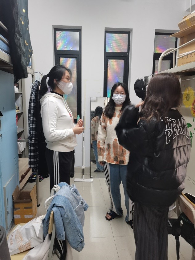 走访学生宿舍,传递人文关怀。利用晚间学生没课的时间,我一直走进20宿和28宿学生公寓,那是凯劳学院的女生宿舍。我想用平常的聊天方式,走进学生的一方天地,了解准封闭状态下她们的线上学习和生活状况,听听她们对于网课的想法和建议。我试着从她们的视角出发,去倾听他们的所思所想,努力以一名“良师益友”的身份,去帮助他们排解困惑焦虑的情绪。