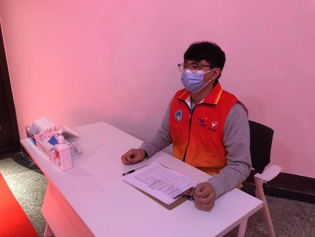 吴明锦同学报名参与实习单位的先锋志愿岗。主要负责对外来人员进行登记测温,观看监控录像,确保采集核酸规范,协助防疫人员对核酸异常人员进行流调等工作。
