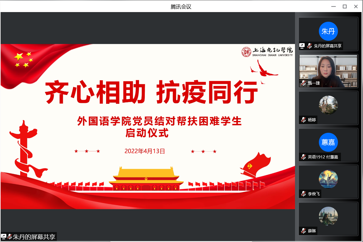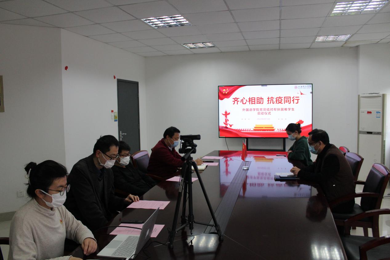 4月13日下午,外国语学院采用线上线下相结合方式,举行“齐心相助 抗疫同行”党员结对帮扶困难学生启动仪式。校党委书记鲁雄刚、党委组织部部长吴美华、党办副主任时晓建,外国语学院党政班子成员、三级机构负责人、党支部书记及支委委员、结对教师代表、困难学生代表等参加启动仪式,仪式由学院党总支副书记甄一捷主持。