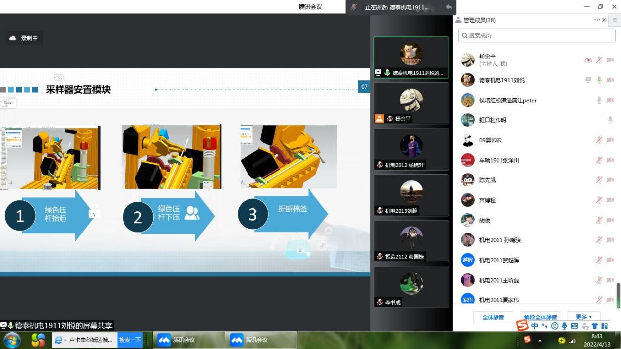 2022年4月13日上午8点30分至下午16点30分,机械学院开展了2022年度大学生科创立项答辩。受疫情影响,本次答辩会采用线上“云”答辩形式,由杜伟明、候培红、汪烨三位老师担任此次立项答辩的评审专家。