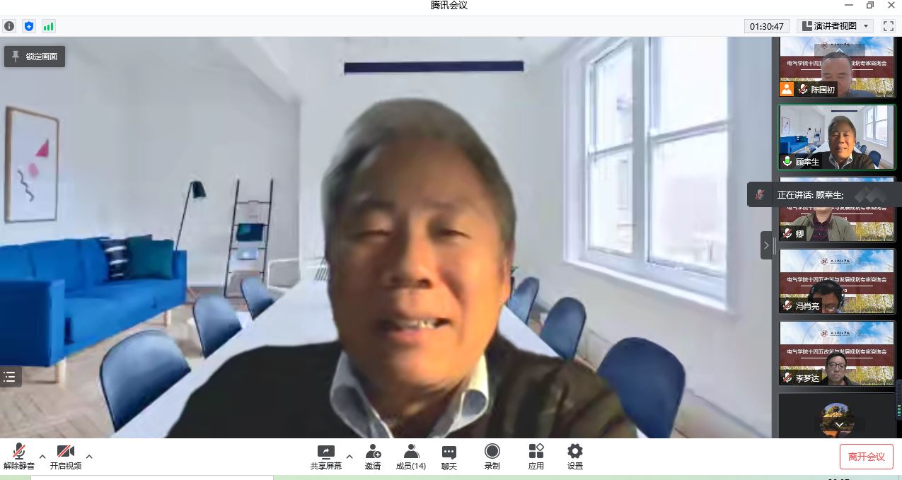 4月15日晚7点,电气学院“十四五”改革与发展规划专家咨询会通过线上腾讯会议召开。会议邀请学校党委副书记杨若凡,华东理工大学教授顾幸生,原上海电气电站集团副总裁/上海电气燃气轮机总经理、现上海电气电站装备高级顾问袁建华,Lenze伦茨集团亚洲总裁谢卫东,上海第二工业大学副校长徐余法,上海电机学院原副校长焦斌,上海电气自动化集团副总裁张玉龙等高校学者、企业专家等出席。
