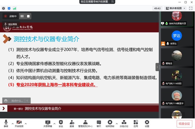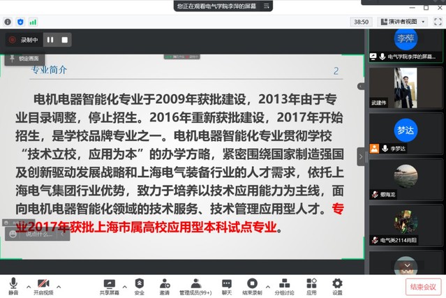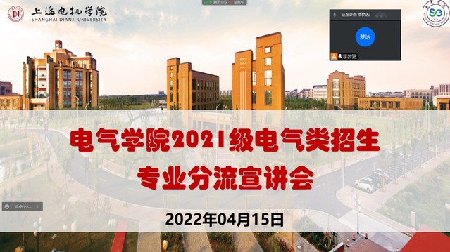 4月15日晚19:00,电气学院通过腾讯会议召开了2021级电气类招生专业分流宣讲会,电气类招生专业分流工作小组成员、2021级电气类专业班主任、辅导员及全体学生参加会议。会议由电气学院副院长李梦达主持。