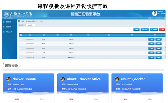 依托智慧云实验平台的个性化功能,定制教学成为“云”上实践的另一主题,并为不同课程的差异化需求提供了专业保障。如为留学生安装英文操作系统与实验环境,教师可自主安装与定制软件,实现统一的开机、关机、重启、选择系统等,也可以根据课程要求与实验内容定制与切换课程模板等,而学生可以独立使用专属云主机,体验丰富多样的实验环境与配置。
