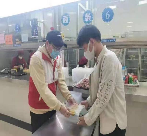 在疫情防控的特殊时期,为保障同学们的饮食供应,学校多次征集意见,并迅速出台了一系列政策,在食堂内外均安排学生志愿者加强用餐路线指引、餐食打包等工作,保障师生用餐安全。机械学院张旭、罗凯文、刘梦豪等研究生同学积极参与到食堂志愿者队伍中,用情用心跑好用餐指引这一棒。