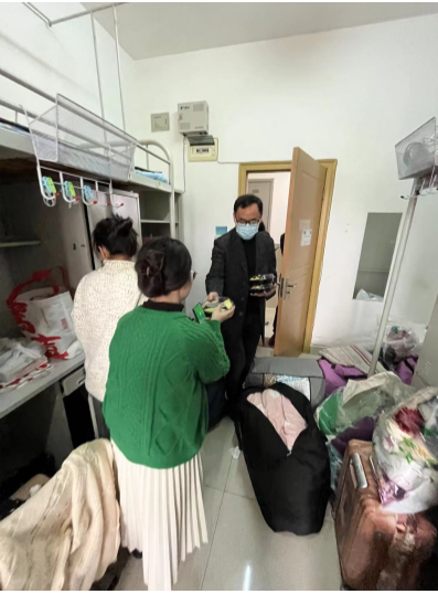 校园准封闭管理前夕,需对36宿的同学进行回迁,项军深入一线,全面了解学生需求,和学生条线共同完成了回迁同学的思想排摸和面临困难的工作处理,在规定的时间节点前顺利完成回迁任务。