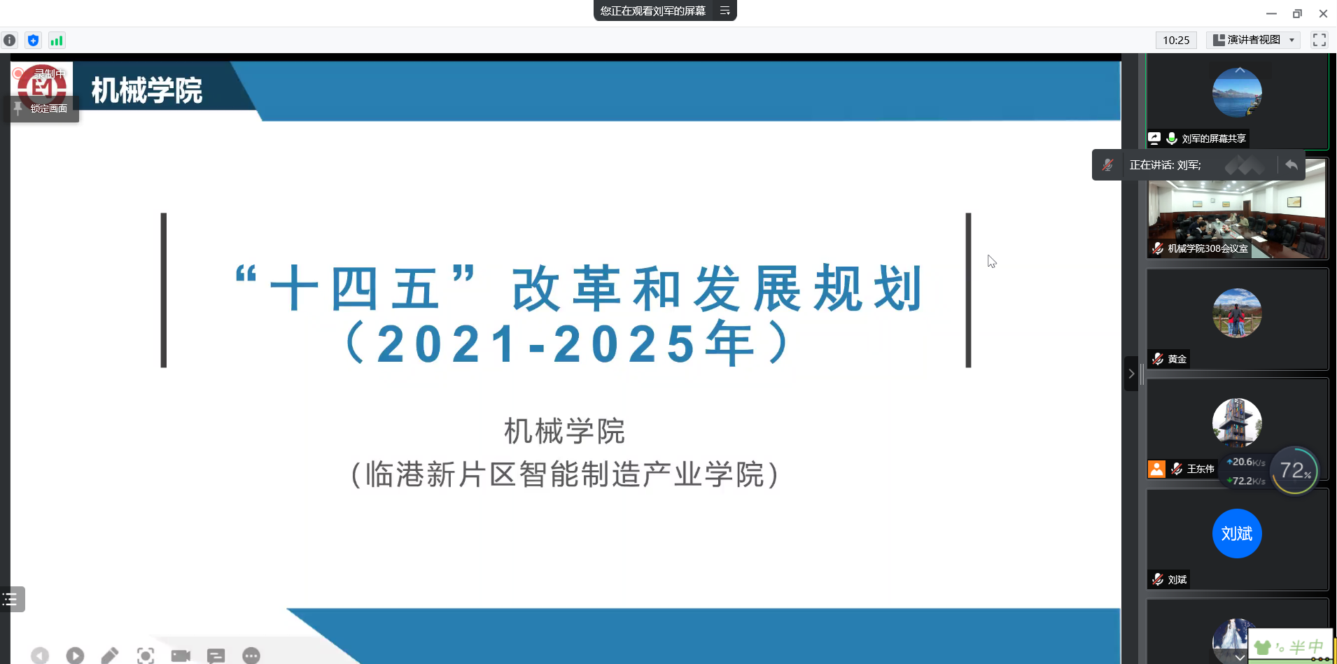 院长刘军详细解读了机械学院“十四五”改革与发展规划,首先分析了“十三五”期间学院发展的主要经验及存在问题;其次擘画了“十四五”发展蓝图,勇于当好学校的挑担者和创新改革的先驱者;最后从一个目标、四大任务、八项举措的规划中详细分解落实了各项工作的实施路径。本着质量立院、学科强院、人才兴院、文化塑院的治院理念,尽责尽职地当好学校的挑担者和创新改革的先驱者,努力将学院打造成为“智能造”的技术策源地和人才培养新高地。