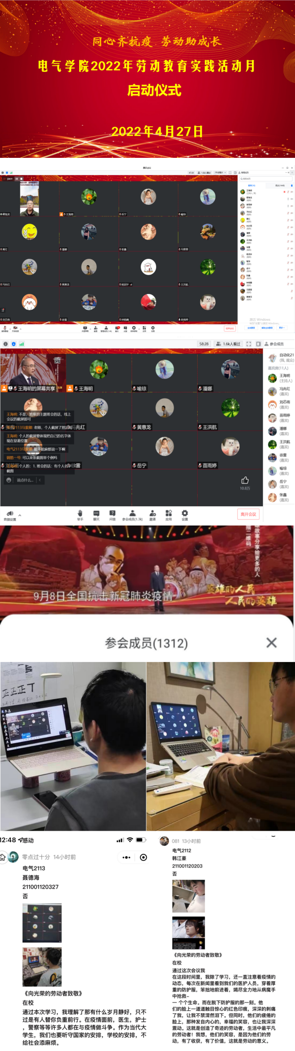 4月27日,习近平总书记在给首届大国工匠创新交流大会的贺信提到的“要大力弘扬劳模精神、劳动精神、工匠精神”,这在电气学院师生中引起强烈反响。4月27日晚电气学院通过腾讯会议召开学习习近平总书记有关劳动教育的重要论述,并启动电气学院2022年劳动教育实践活动月。学院1650名学生参加会议。