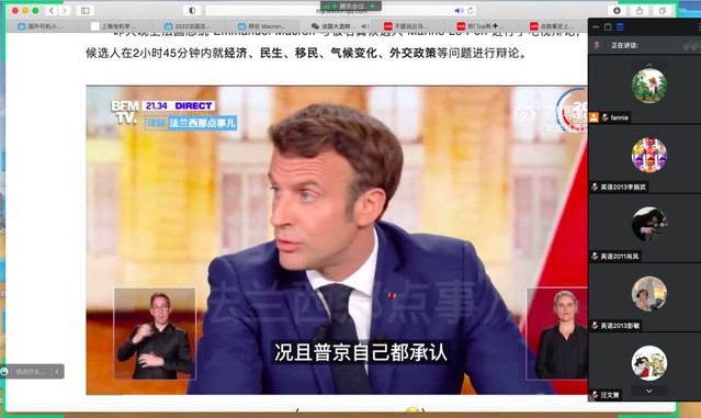 作为全校唯一的法语老师,李凡老师能够主动进行中法文化对比传播,培养学生的思辨能力。线上教学时,她会用分享文化和介绍热点新闻的方式,吸引同学们课前十分钟进入会议室,充分做好课程的“预热”,使学生能在情境带动下进入法语学习环境。比如,最近法国进行的总统大选,她就会进行融入,使学生了解法国的政治选举制度、法国国情等。