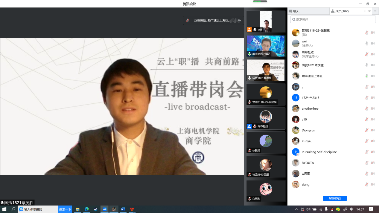 4月29日下午14:00,上海电机学院商学院成功举办了2022届毕业生直播推介活动。建发物流(世界五百强)上海有限公司人事总监朱辉先生和顺丰速运上海区生态与供应链部门负责人王纪星先生通过云上直播与学生共商就业前路。活动由商学院物流管理系主任张炜老师主持。近两百位商学院学生参与了此次线上直播活动。