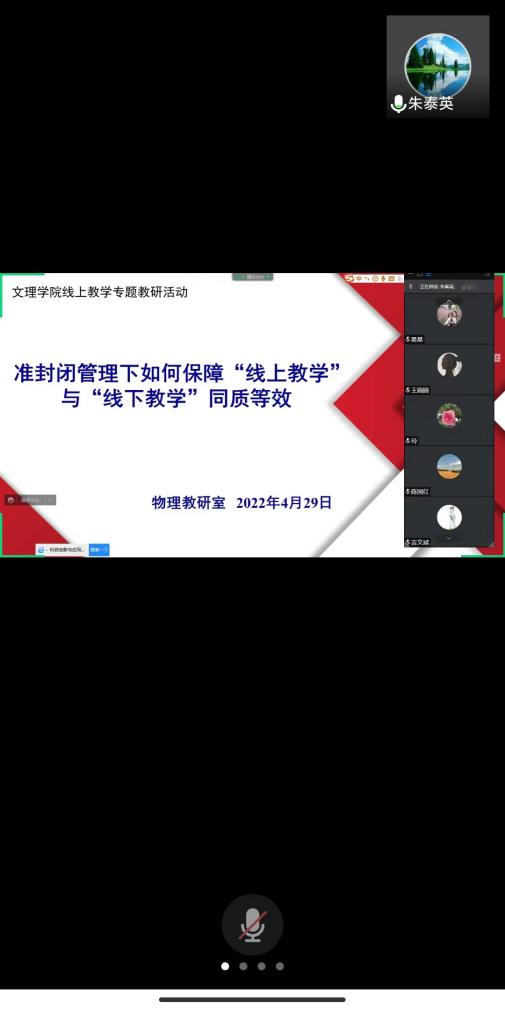 教务处付晓培老师观摩了教研活动。她从新一轮审核评估要求的角度,针对数理基础课及通识课教学质量提升、线上教学模式创新等问题与老师们进行了交流研讨。