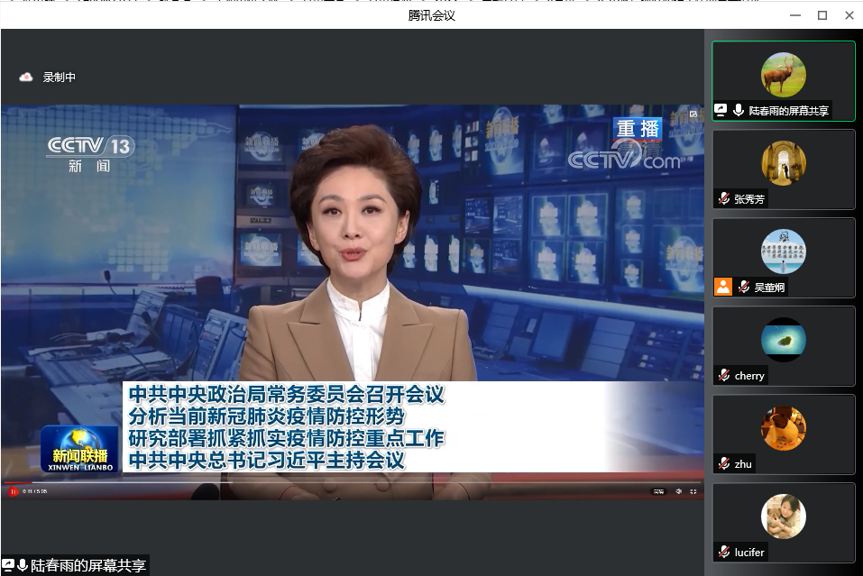 支部书记陈献忠作最后总结发言,在最近两个月的时间里,上海经历了一场惊心动魄的考验,我们看着上海感染的人数在逐步上升,又看着上海感染人数在逐步降低。在这样的一个过程中,感谢每位教职工坚守自己的岗位,积极配合落实党中央、市委和学校疫情防控决策部署,积极参加属地社区疫情的防控工作。同时号召全体教职工进一步将思想和行动统一到习近平总书记重要讲话精神和中央的决策部署上来,进一步增强四个意识,坚定四个自信,坚决做到两个维护。在上海市委的领导下,进一步增强责任意识,加强自我防护,坚定信心、同舟共济、咬定目标,相信在上海市委的领导下,在学校党委坚强的组织下,我们一定能够打赢大上海的保卫战,一定能迎来在校园里重聚的那一天。(供稿:工业技术中心)