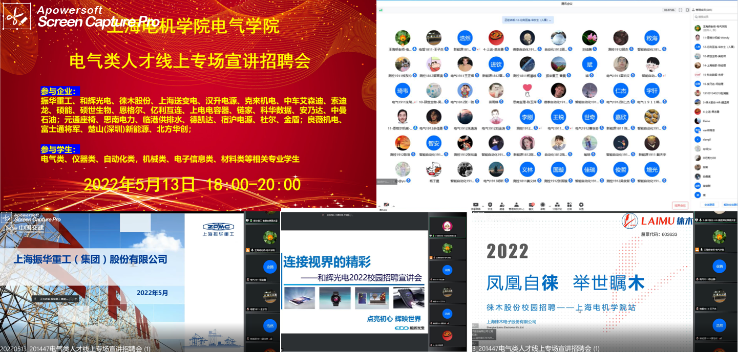 为积极应对新冠肺炎疫情带来的影响,抢抓毕业生求职关键期,帮助毕业生顺利就业,落实教育部2022届高校毕业生就业促进周活动要求,电气学院于5月13日联合28家对口名企搭建线上平台,组织开展了电气类人才线上专场宣讲招聘会。企业负责人,电气学院领导、辅导员班主任和来自我校电气类、仪器类、自动化类、机械类、电子信息类、材料类等相关专业学生400余人参会。