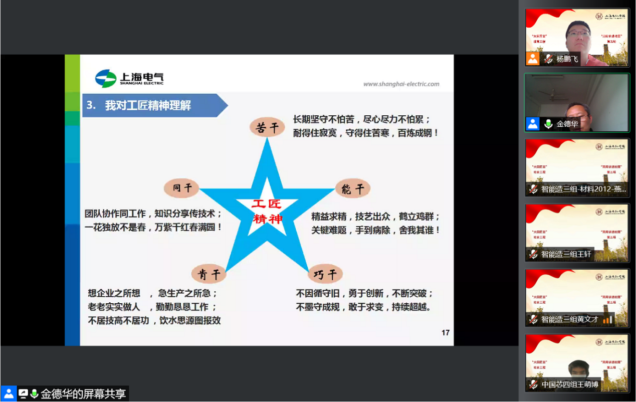 为进一步弘扬工匠精神、培育大国工匠,推动产教融合、加强校企合作,彰显校友风采、营造校友文化,“大国匠苗”培育工程研习暨“周周讲进校园”结合毕业季系列活动,举办传承“老中青”三代“匠心”的校友工匠系列讲座。5月27日下午,特别邀请到我校82届校友、国家级技能大师工作室领衔人金德华,开展主题为“做企业需要的工匠”的云端讲座,吸引了200余名师生在线聆听。活动由校团委副书记杨鹏飞主持。